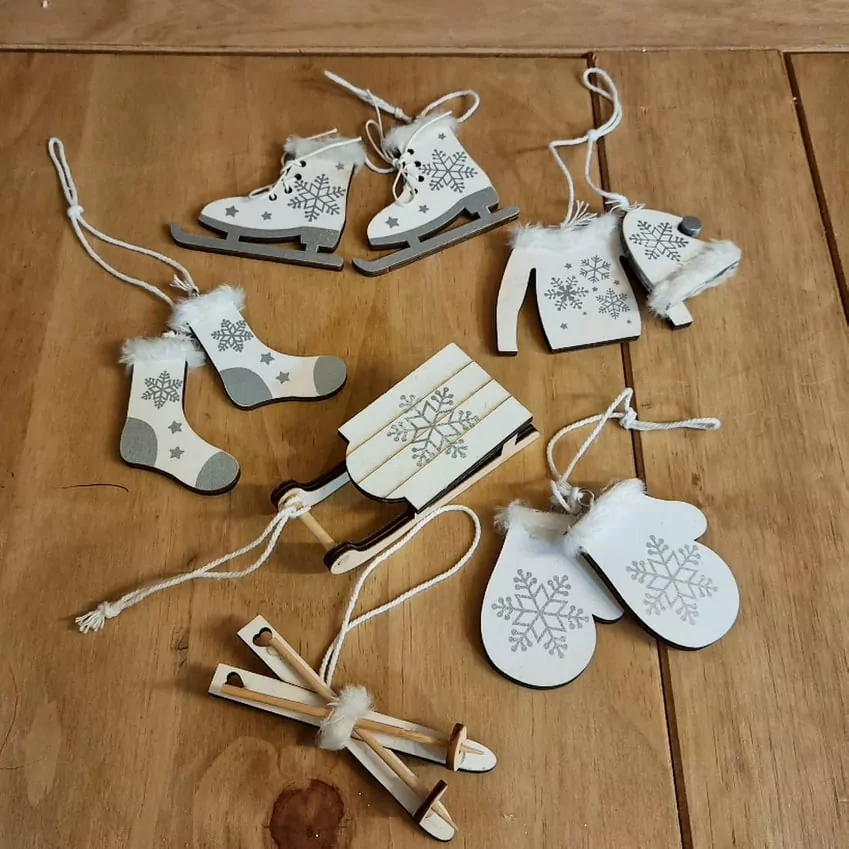 - Lyže/brusle/rukavice přízdoby dřevo 7cm K6097